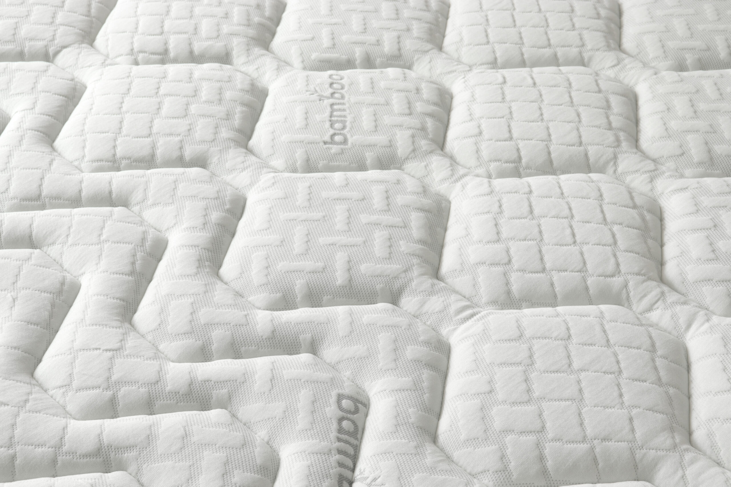 Viršutinis čiužinio sluoksnis pasižymi Bamboo knitted fabric audiniu. Bambuko pluoštas yra vertinamas dėl savo unikalių savybių: Antibakterinis ir hipoalerginis: natūraliai atstumia dulkių erputes ir mikrobus, Termoreguliacija: sugeria drėgmę ir garina ją greičiau nei medvilnė, todėl miegosite vėsiai vasarą ir šiltai žiemą, kartu su Anti-bacterial puffy fibers, šis paviršius sukuria saugią ir sveiką miego aplinką net ir jautriausią odą turintiems žmonėms.