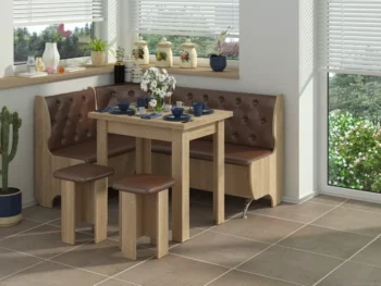 Virtuvinis kampas Kniaz. Šio kampo kryptis yra universali, todėl jį galima surinkti tokia kryptimi, kokia Jums reikia, t. y. surinkimo metu galėsite pasirinkti, kurioje pusėje bus trumpasis kampo galas. Šis kampas turi dvi daiktų dėžes po sėdimosiomis dalimis. Šis virtuvinis kampas yra pagamintas iš aukščiausios kokybės medžiagų. Kampas komplektuojamas kartu su stalu ir dvejomis kėdėmis.